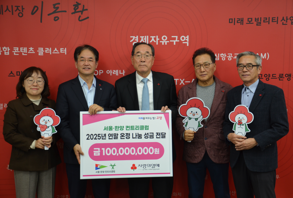 서울한양CC는 29일 오후 3시 고양시청을 방문해 '희망 2026 나눔 캠페인'의 일환으로 이웃돕기 성금 1억 원을 기탁했다. 이날 전달식에는 서울한양CC 조갑주 이사장과 이동환 고양시장 등 주요 관계자들이 참석해 나눔의 의미를 되새겼다.
