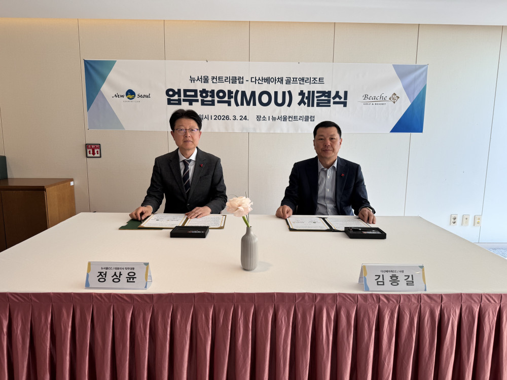 다산베아채 골프앤리조트는 지난 3월 24일 뉴서울컨트리클럽과 회원 교류 및 골프장 운영 협력을 위한 업무협약(MOU)을 체결했다고 밝혔다